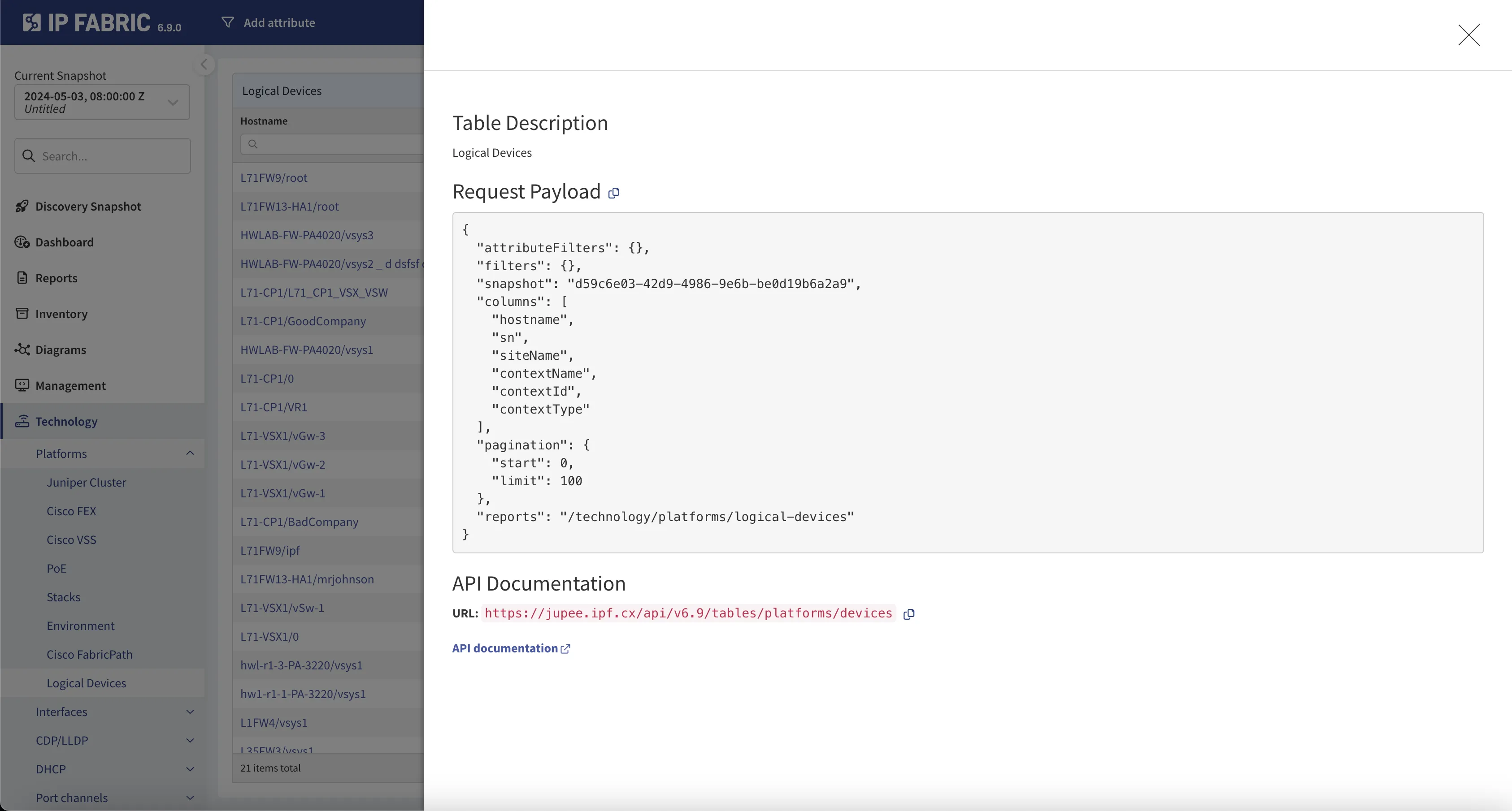 IP Fabric is an API-first client, which means that every click in the user interface (UI) has an associated API call.