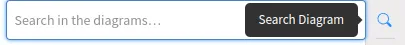 Search looks up any text currently present on the diagram. Typing query filters the view, and clicking the Search button focuses and zooms in on the item.