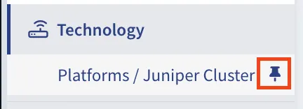 To pin any page in the Technology Tables, click the pin button next to the table name. The page will instantly appear in the left Main Menu.