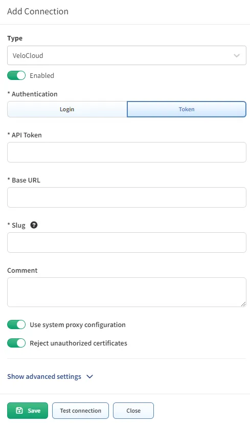 - API Token configured in the Global Settings of the VeloCloud Orchestrator