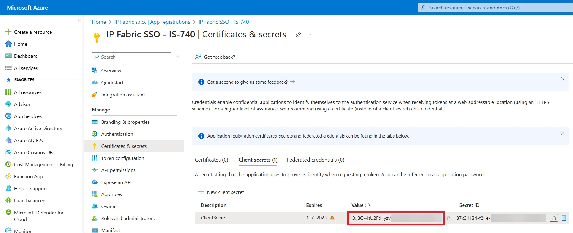 Prior to configuring SSO, the IP Fabric server must not be using a self-signed certificate. To create a new signed TLS certificate, please see the instructions in IPF Certificates.