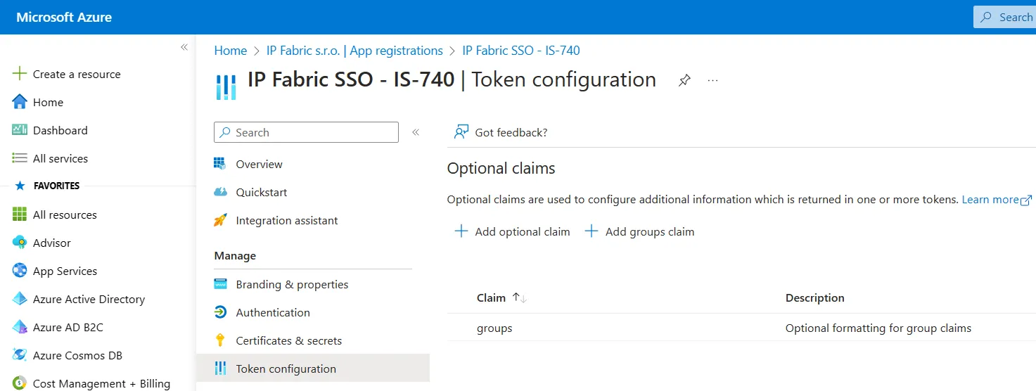 Security groups: Emits security groups of which the user is a member in the groups claim.-