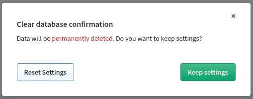 We recommend selecting Keep Settings. If you select Reset Settings, all system and discovery settings will be lost, including login credentials, Site Separation rules, saved views, shared URLs, filters, and API tokens. The system settings will be reset to defaults except for: