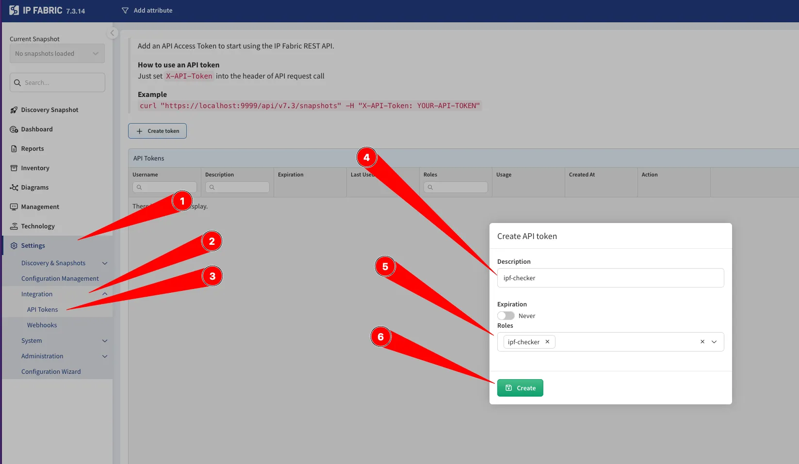 An API token is required when executing the script with authenticated tests enabled. You can generate the token in the IP Fabric UI.