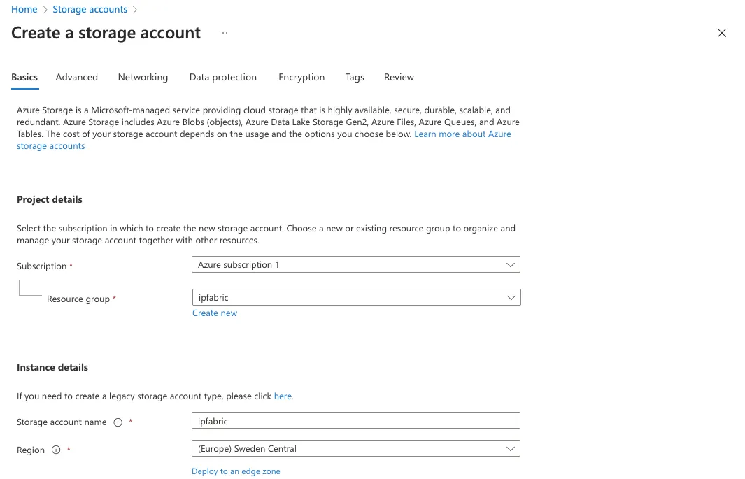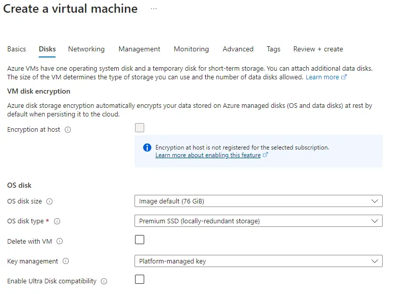 Premium SSDforDisk Storage. Data Diskcan be left as default as IP Fabric does not use a separate disk for data.- Under
