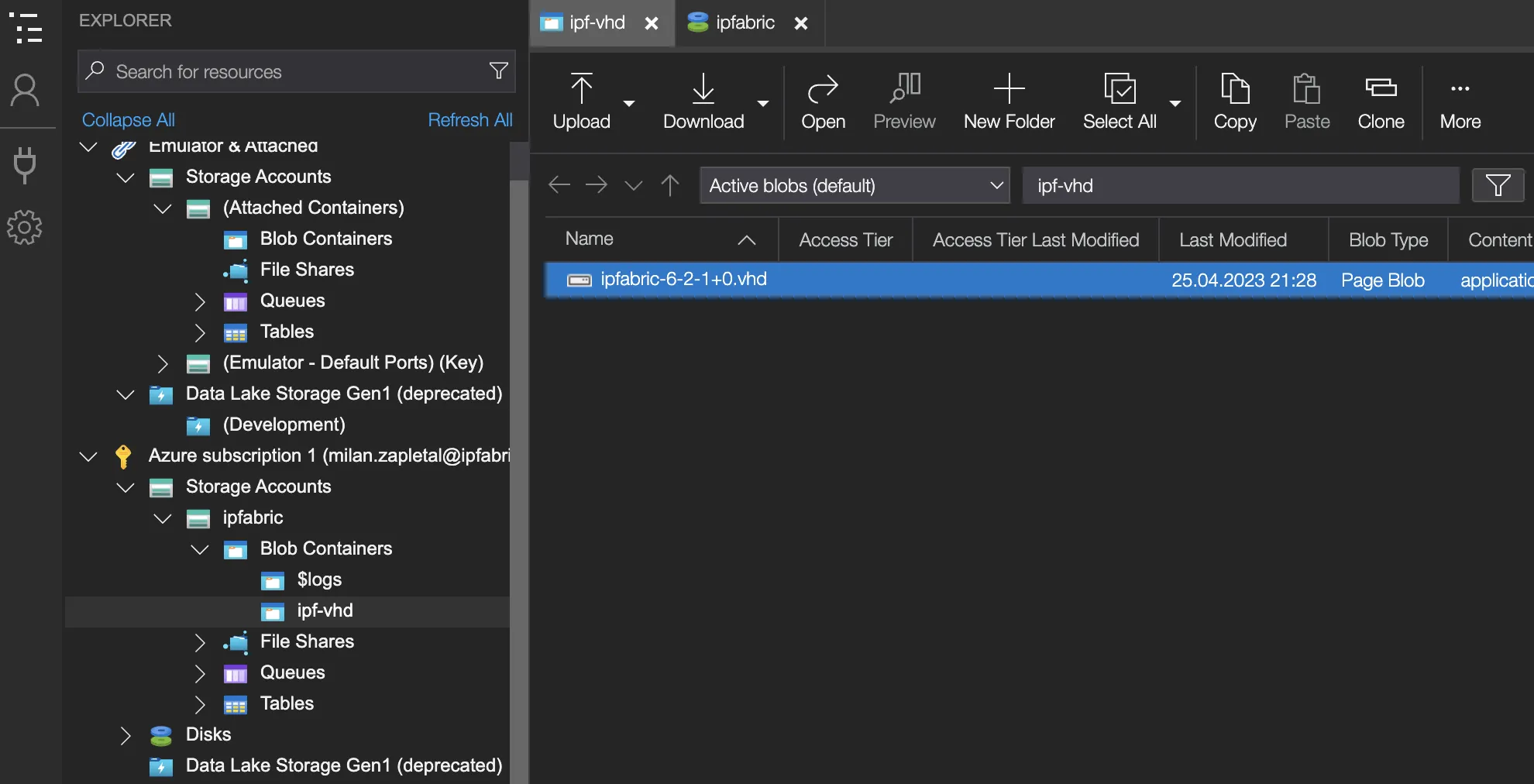 Storage blobto find and select your uploaded VHD. - Set