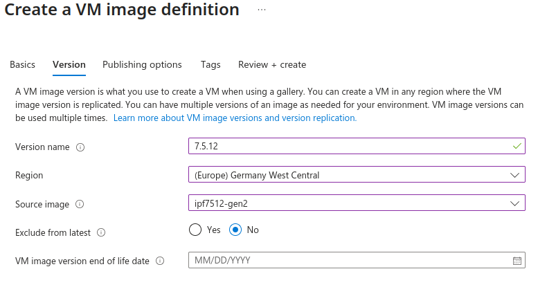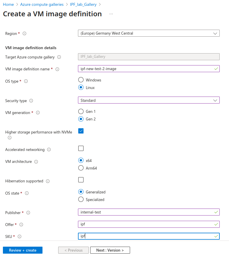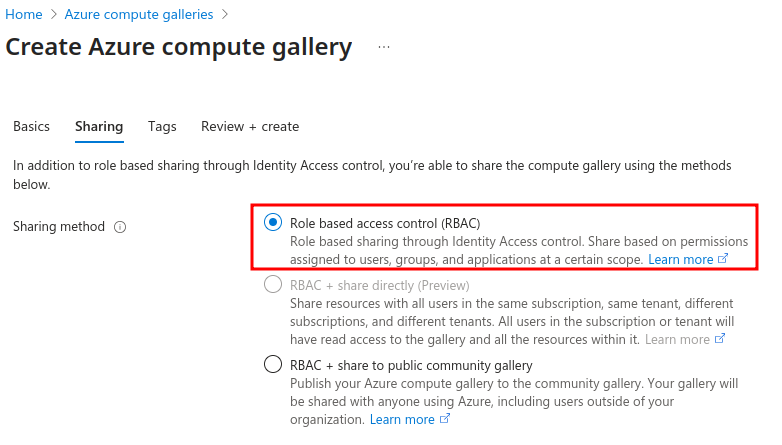 The image definition will be created inside an Azure Compute Gallery. Please ensure that the gallery you choose or create for this purpose does not have public sharing enabled.