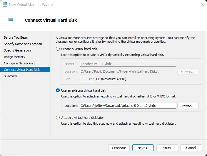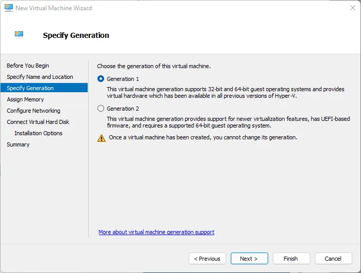 VM generationto eitherGen 2orGen 1as desired.Gen 2is required for NVMe. Both are supported by IP Fabric. - Browse the