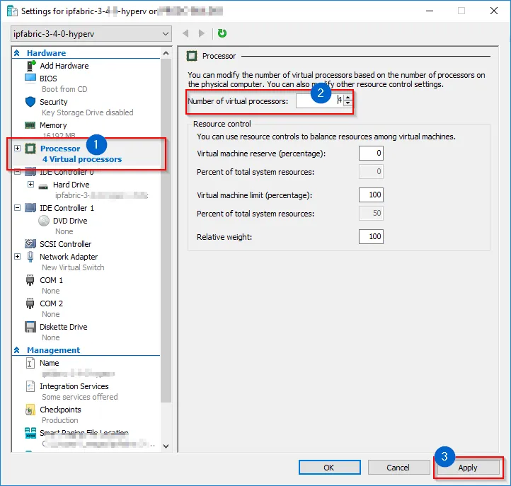 - Edit VM settings and adjust according to your network size as described in the Operational Requirements section.