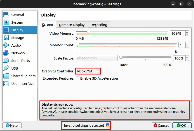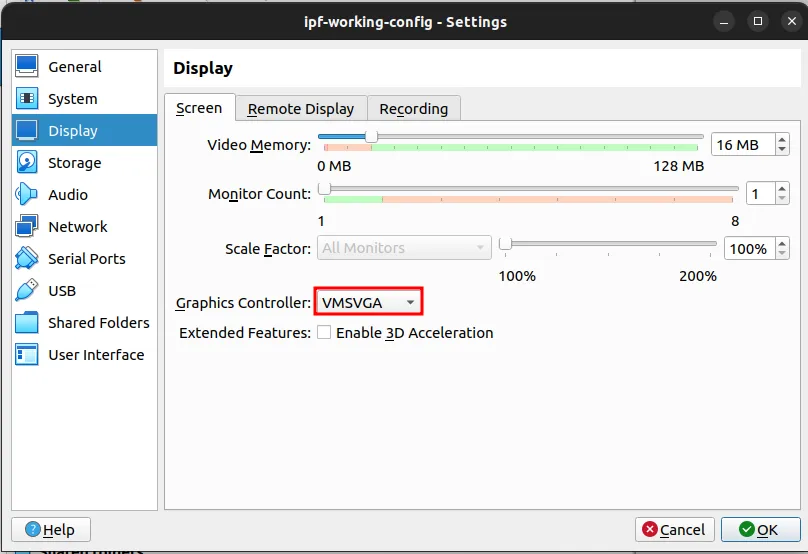 Close the VM Settings window.